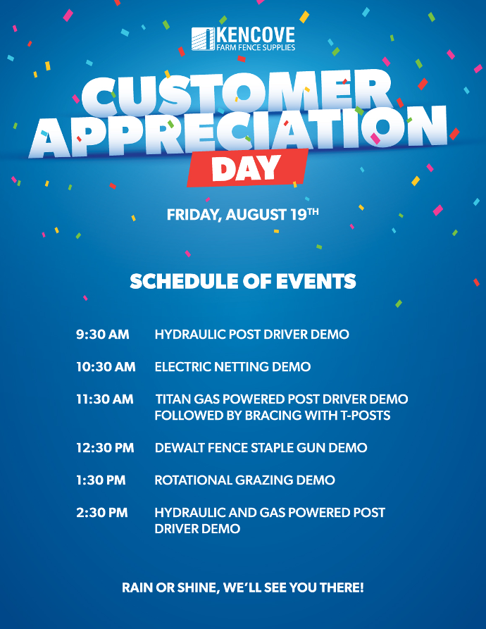 Stop in from 9am - 3pm for refreshments, prizes, equipment demos, and more! Meet and Greet with our product specialists and learn about all the products Kencove has to offer!